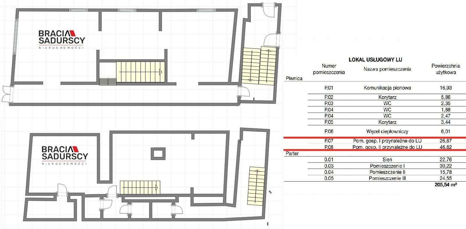 Lokal użytkowy przeznaczony pod działalność gastronomiczną obejmuje dwie kondygnacje - piwnicę oraz parter