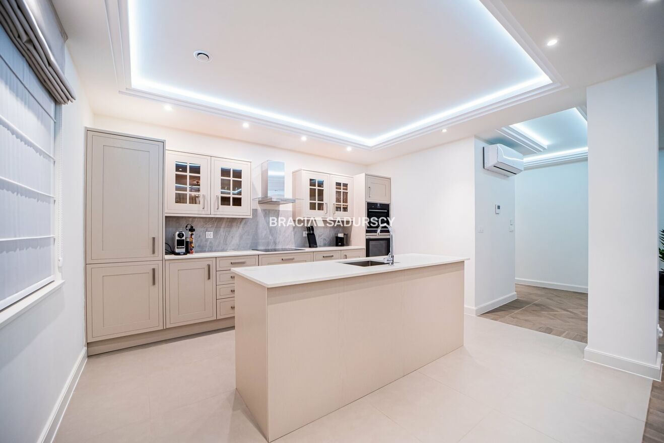 kamiennymi w modnym odcieniu złamanej bieli. Wyposażenie obejmuje m.in.: piekarnik Bosch, płytę indukcyjną Bosch,