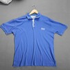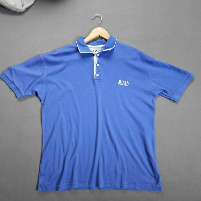 Klasyczna koszulka polo marki BOSS Hugo Boss w kolorze niebieskim z białym wykończeniem kołnierzyka. Zapinana na trzy ...