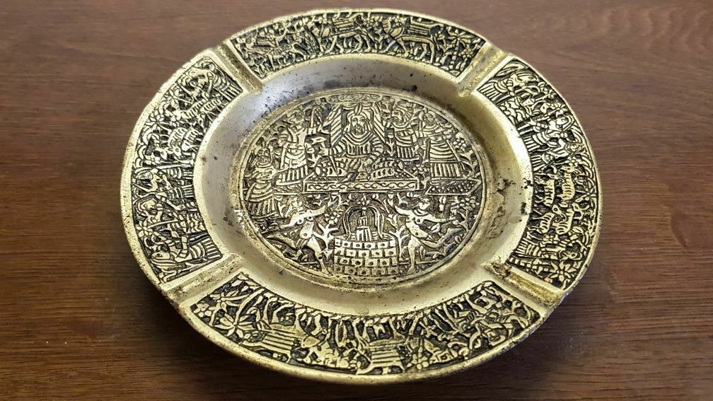 Mosiężna popielniczka. Zabytek. Indie.