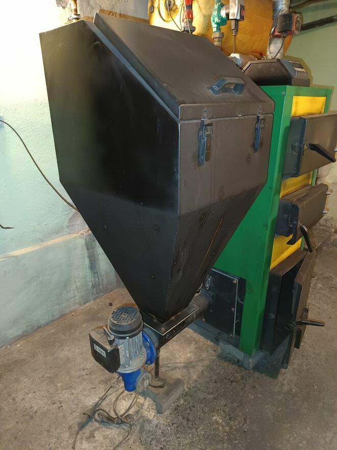 • Podajnik ślimakowy na ekogroszek po lewej stronie,