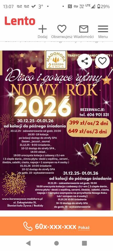 Witam serdecznie daje to ogłoszenie ponieważ obiecałem sobie że w te święta nie będę sam i spędzę je z uśmiechem na twarzy z kobietą która tak jak ja ma dosyć samotności i chciała by iść dalej przez życie w stałym związku.Nie jestem ksienciuniem z bajki nie mam białego konia i milionów na koncie hmmm .Kiedyś było prościej poznać kogoś były zabawy dyskoteki a teraz to tylko tel. Internet i tak powiem że prędzej w lotto idzie wygrać niż poznać kogoś normalnie graniczy to z cudem by się potocznie mówiąc znów zakochać a tyle jest podobno samotnych kobiet .. coś o mnie Mieszkam sam okolice Żywca w domu który buduje ,Mam dzieci dorosłe mieszkają osobno stała praca i jestem po rozwodzie jakiś 6 lat zostałem zraniony przez kobietę więc dopiero teraz postanowiłem kogoś próbować poznać ale Zmieniamy temat Mam wyzwanie takie jeżeli potrafisz się zachować w każdym towarzystwie zrobić się na bustwo by mi szczęka opadła hihi lubisz tańczyć nie jesteś jakąś waryjatką to już chce cię Poznać .Zapraszam na Miły pobyt w pensjonacie na zabawę sylwestrową transport musiała byś sobie jakoś ogarnąć resztę na płacę ,mam rezerwacje zrobioną na te dni proszę o konkretną odpowiedz z załączonym zdjęciem jeżeli jesteś chętna to proszę podać nr tel.zadzwonię przyspieszy to nasz kontakt byśmy się poznali kłania się Arek góral ze hejj i całuje w rączkęPowiadom o podobnych ogłoszeniach