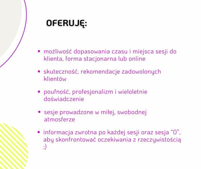 Praca z ludźmi, to moja pasja. Oferuję sesje oraz indywidualne szkolenia w następujących tematach: - przygotowanie ...